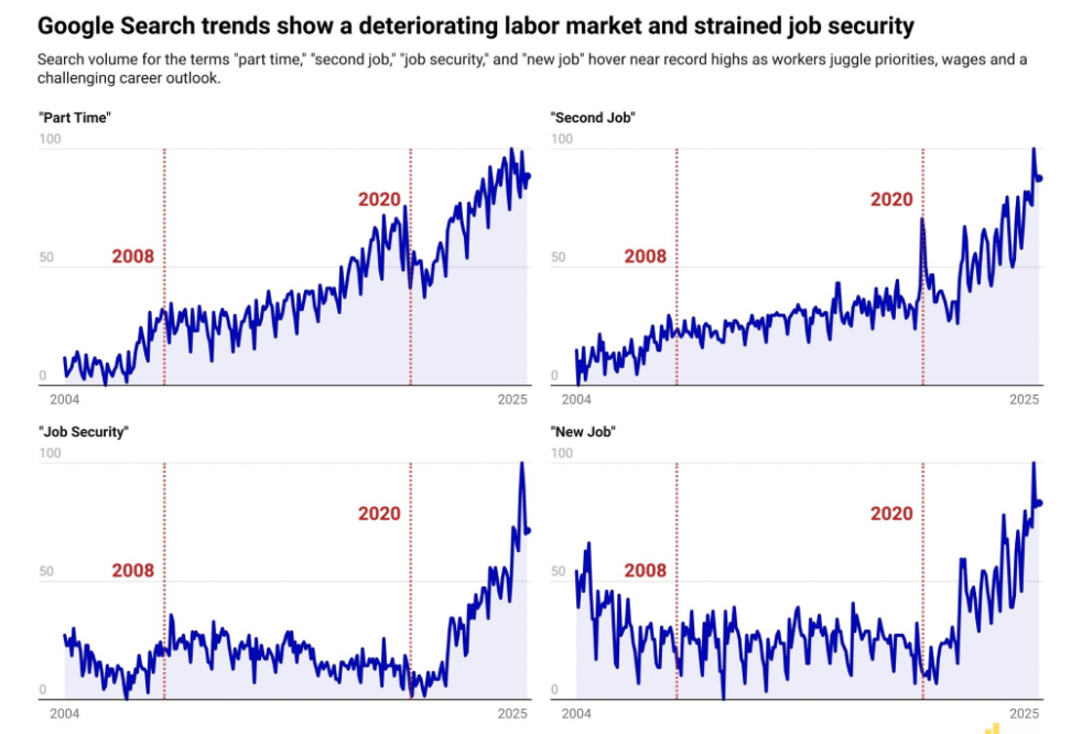Y ahora mismo, las tendencias de búsqueda de Google ofrecen una de las ventanas más claras sobre el sentimiento de los trabajadores y las condiciones del mercado laboral.