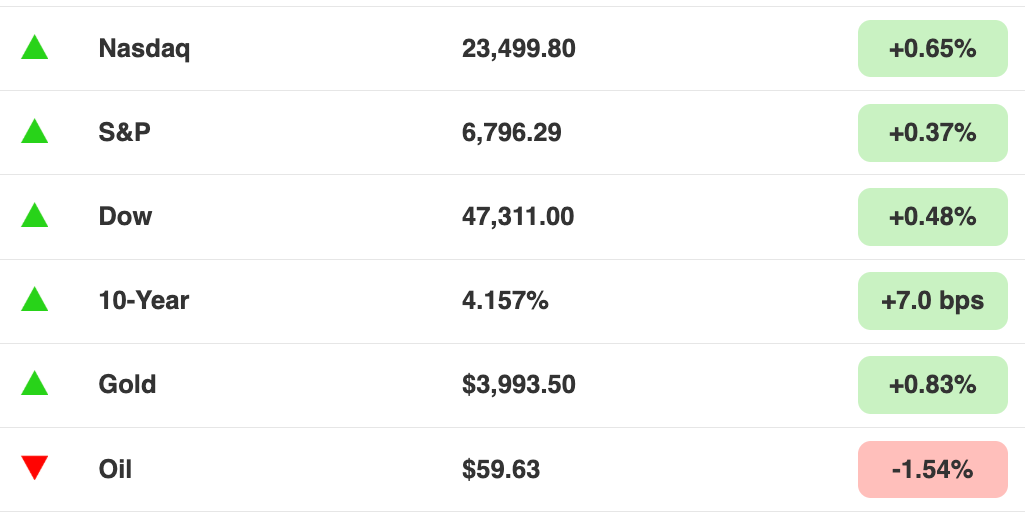 Alphabet, la empresa matriz de Google, gana 2.3%, extendiendo el rally de la semana pasada por optimismo sobre la última versión de su modelo de IA Gemini.