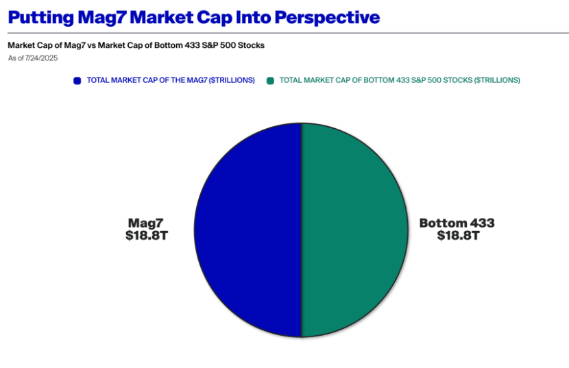 Las 7 empresas magníficas promedian una capitalización bursátil de 2,7 billones de dólares cada una.