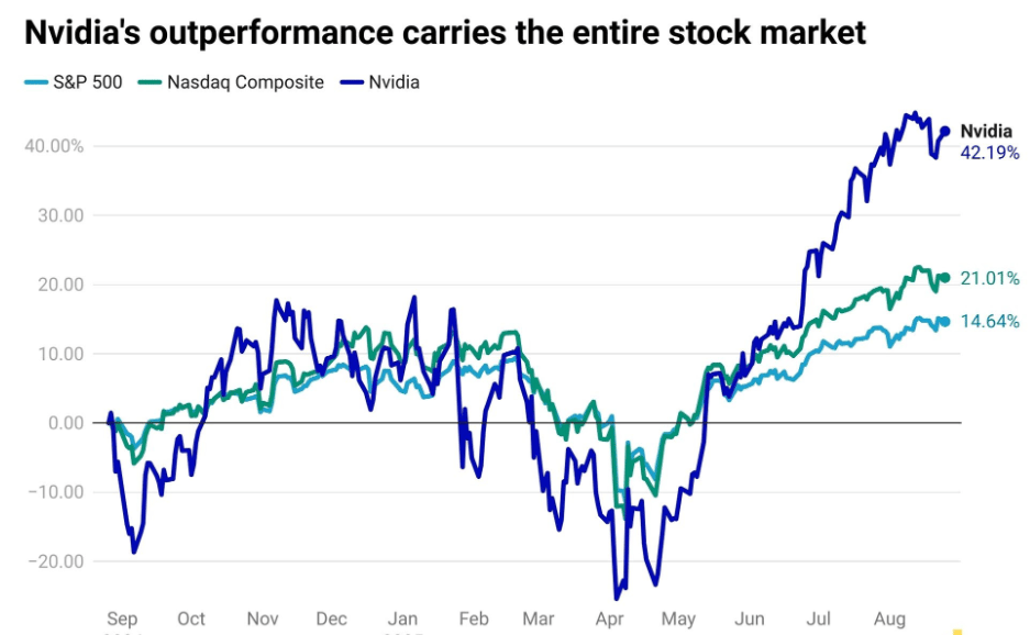Con una capitalización bursátil de 4,34 billones de dólares, Nvidia representa ahora el 7,9% del S&P 500, la mayor ponderación del índice para cualquier acción en la historia.