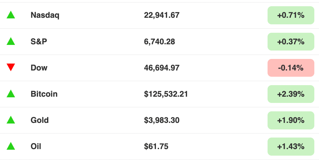 Las acciones parecen hacer una pausa después de la subida impulsada por la tecnología. El oro retrocedió tras acercarse a $4,000 por onza. Las automotrices cayeron cuando Trump anunció aranceles del 25% en camiones.
