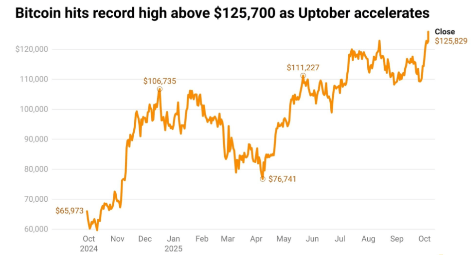 La mayor criptomoneda del mundo alcanzó un nuevo máximo histórico el lunes por encima de $126,000, llevando su ganancia del año hasta el 35%.