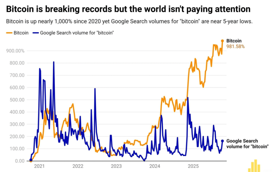 A diferencia de ciclos anteriores, bitcoin ahora tiene toda la infraestructura de Wall Street respaldándolo, con fondos institucionales absorbiendo miles de millones en flujos de capital, empresas públicas añadiéndolo a sus balances, y la marea política moviéndose a su favor.