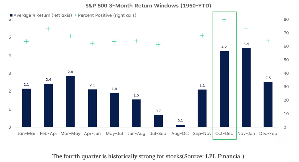 El cuarto trimestre ha sido históricamente sólido para las acciones (Fuente: LPL Financial)