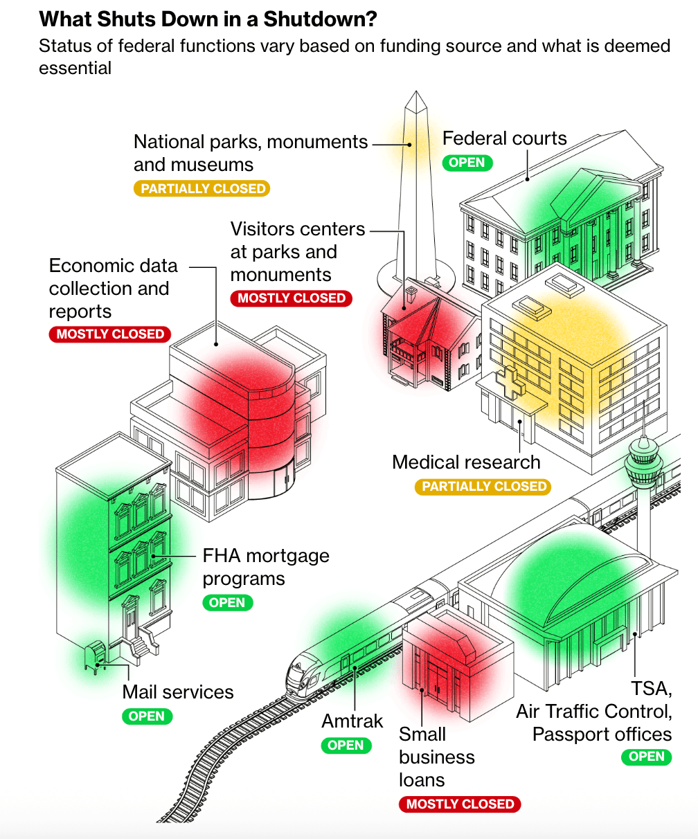 El Congreso no cumplió con el plazo de financiamiento de medianoche, lo que provocó el primer cierre del gobierno de EE.UU. en casi siete años. Esto afectará el acceso a datos económicos importantes.