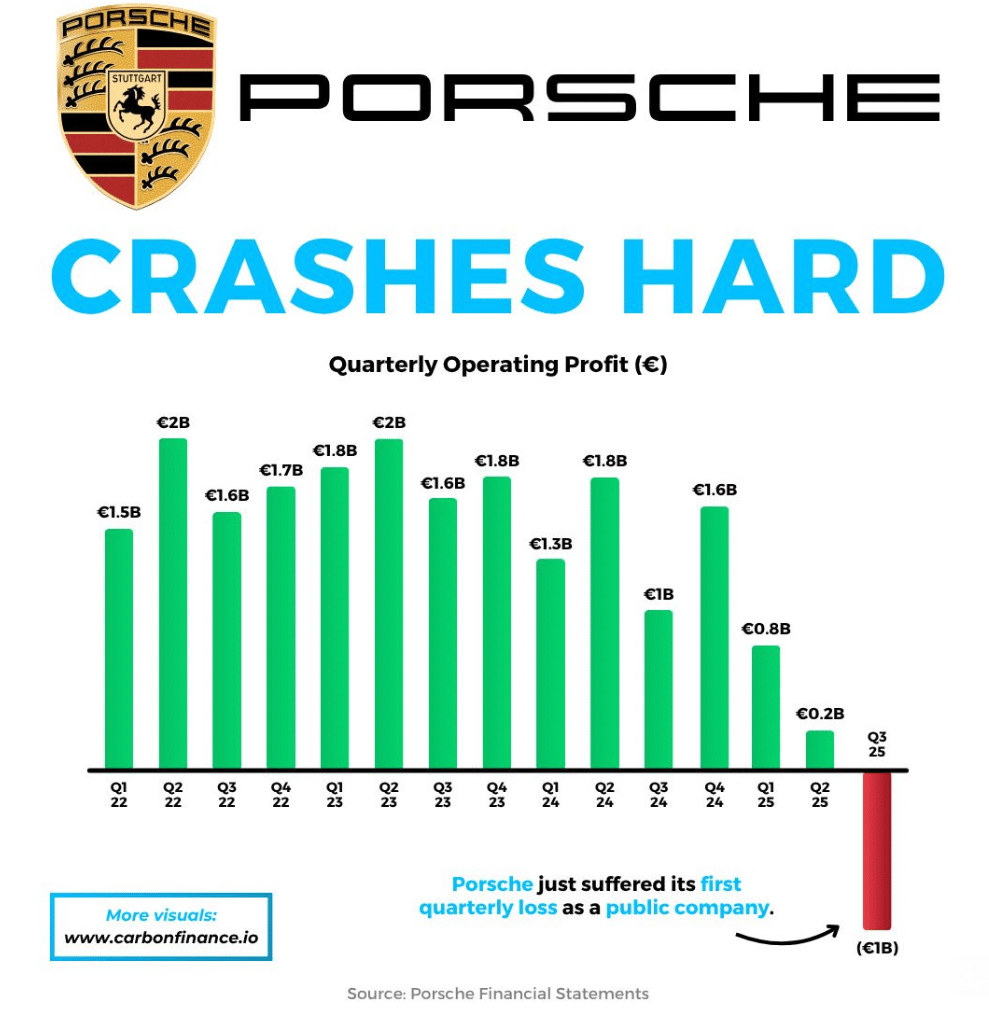 Porsche registró su primera pérdida trimestral como empresa pública.