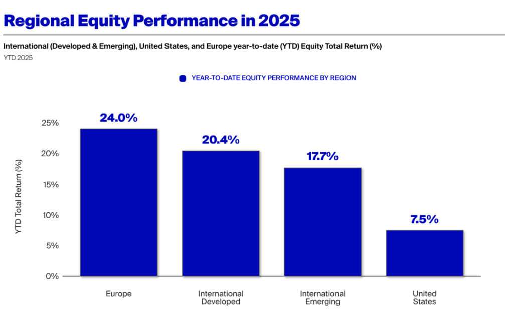 La renta variable internacional tuvo un desempeño aún mejor, con las acciones del resto del mundo subiendo casi un 17% en el primer semestre.